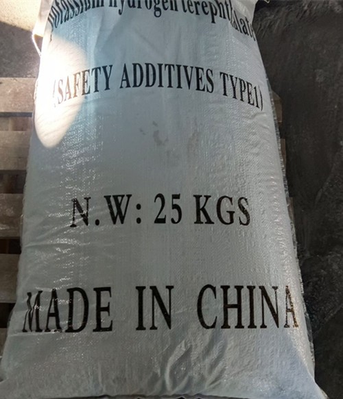 Potassium hydrogen terephthalate (C₈H5O₄K) is a white or blue crystalline organic compound.